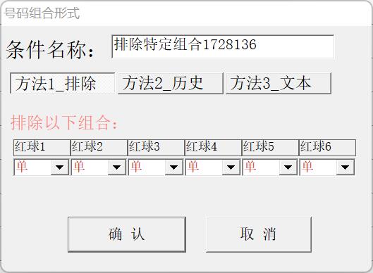 选择“3.排除指定形式的号码组合”然后点击“确定”按钮,弹出具体设置窗口